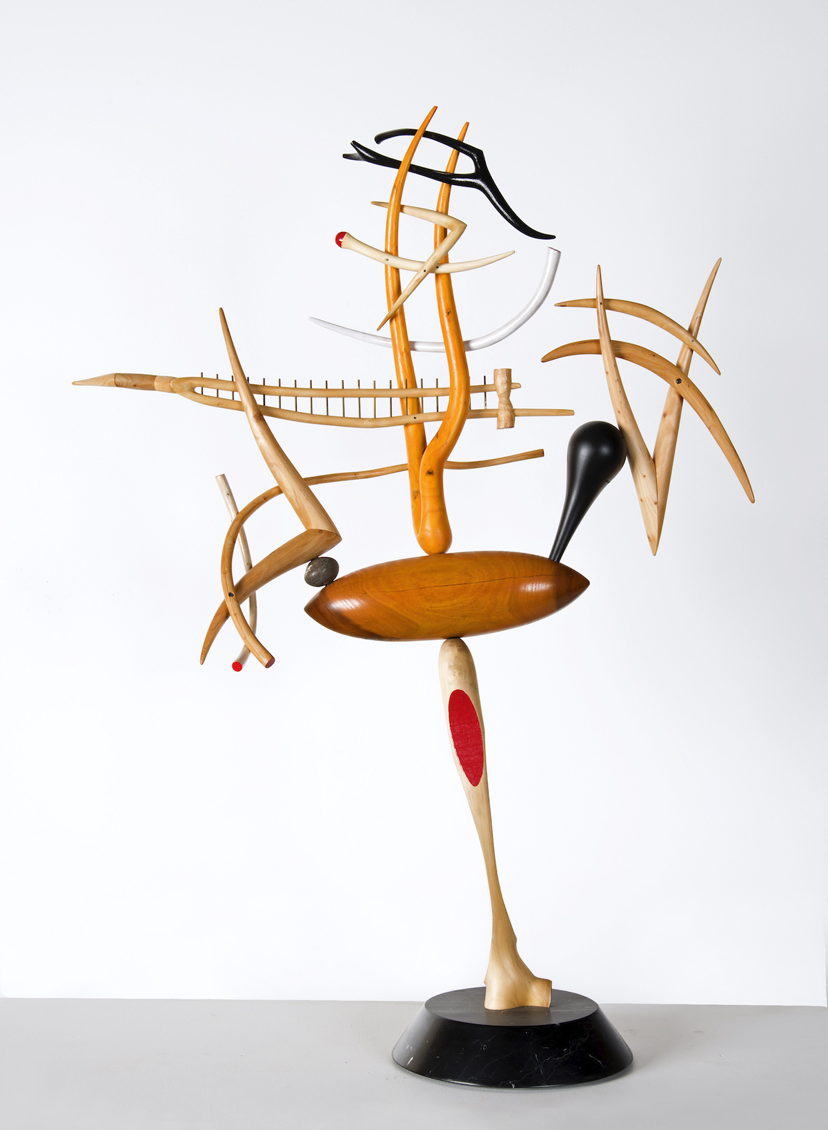 natural and painted wood, stone, marble