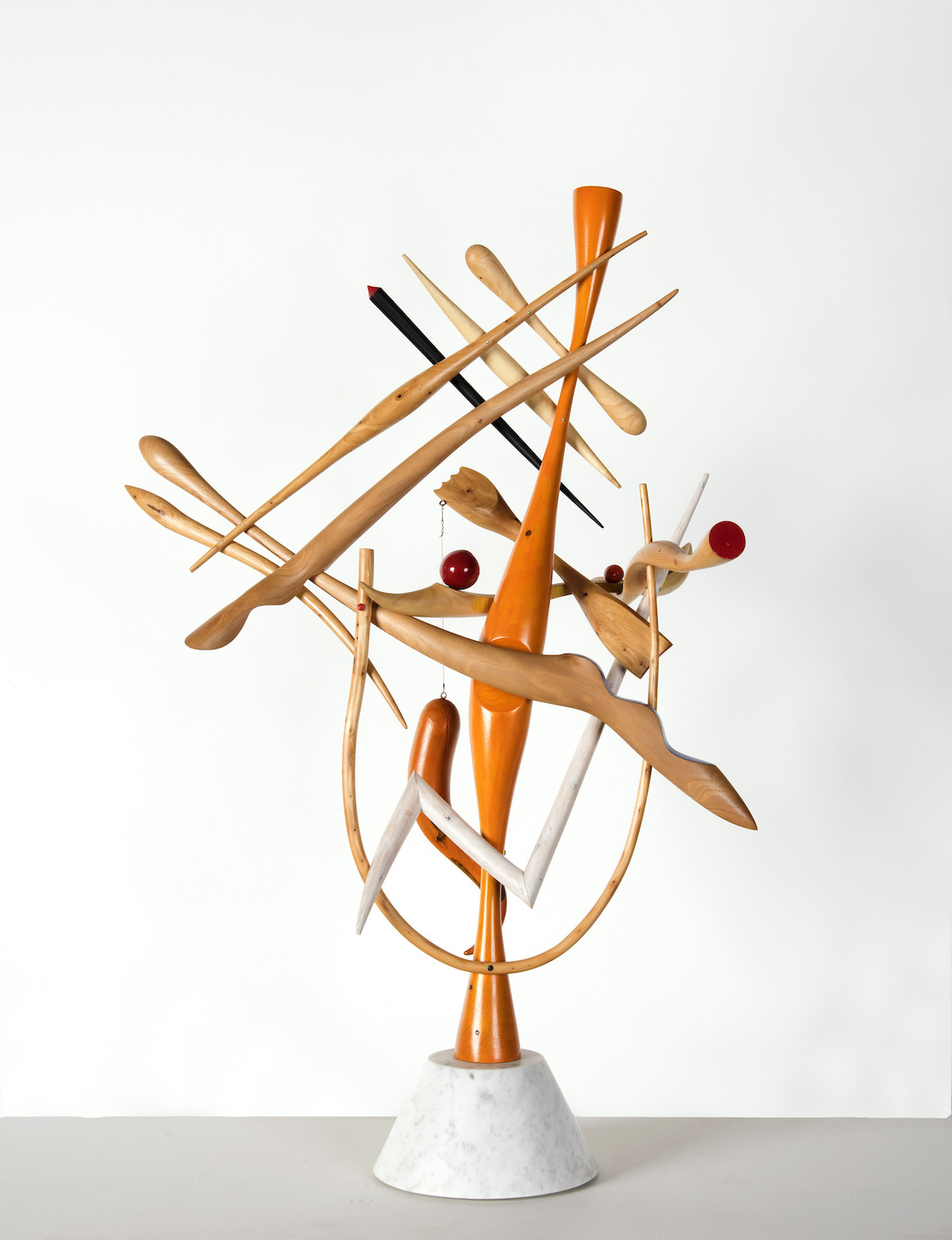 natural and painted wood, painted macadamia