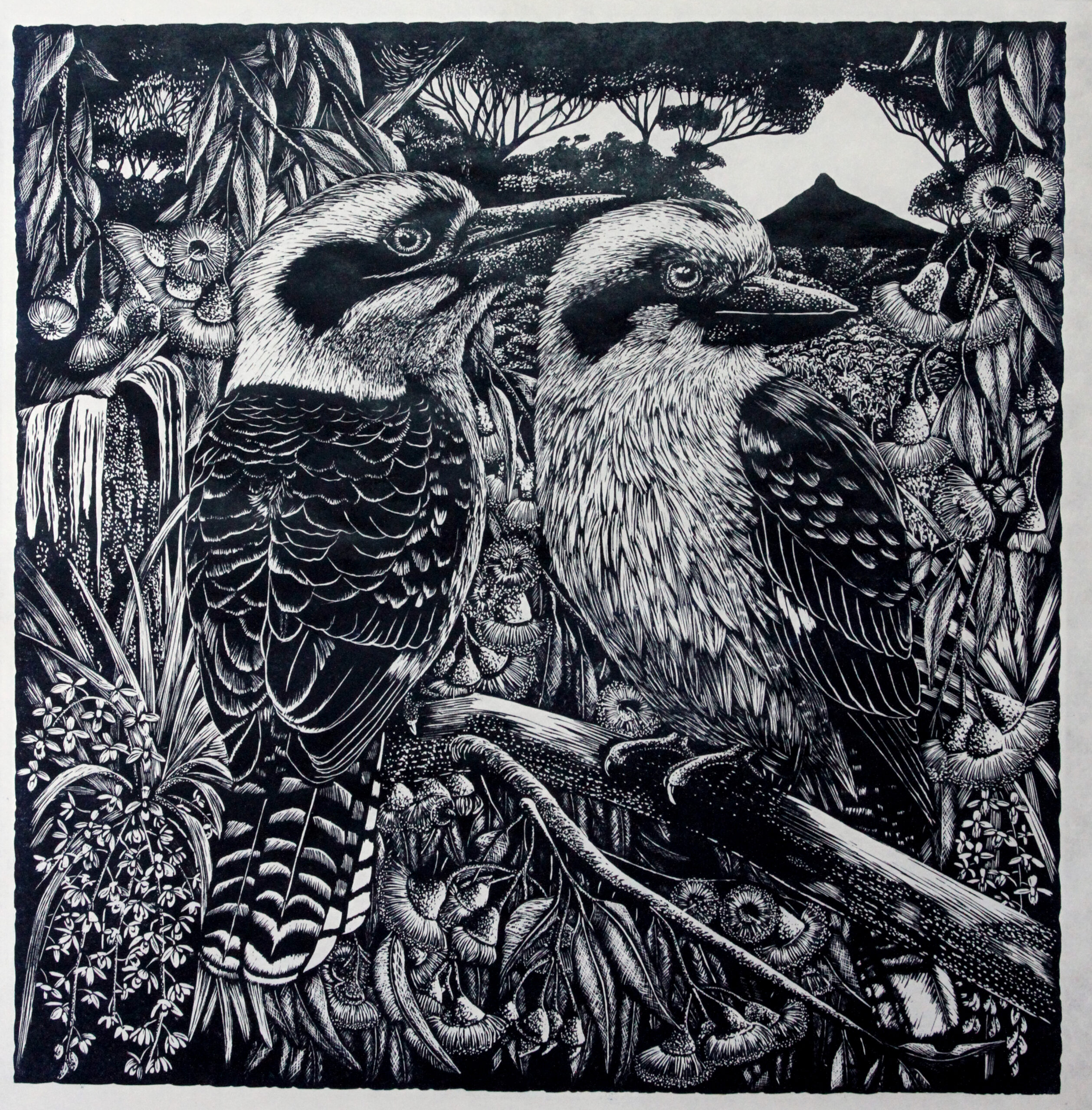 Relief Linocut – hand carved on silk linoleum, printed with Prussian blue ink on Japanese paper, edition of 30