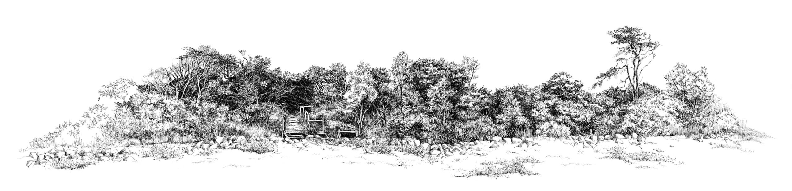 Fine-liner ink on old survey maps,