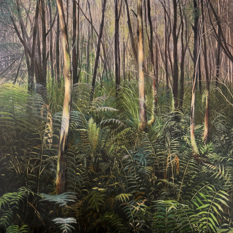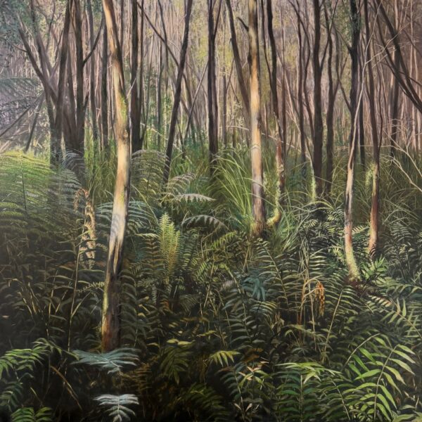 Charcoal and oil on wood panel