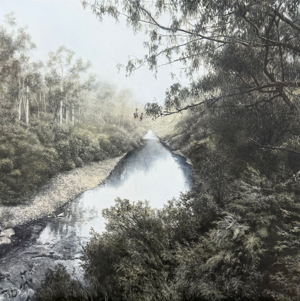 Charcoal and oil on wood panel